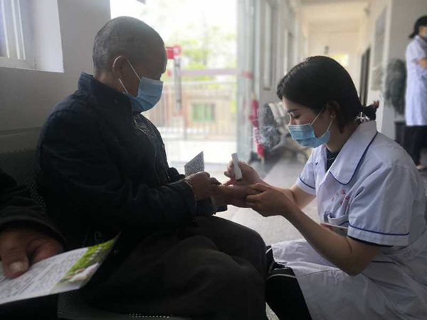 一大早,护理部主任王友琼带领20名护士来到广元市利州区敬老院,给他们送去水果、牛奶、鸡蛋等营养品,同时为每位老年人做好基本健康指标检测。护士们充分发挥中医院特色优势,通过熏艾灸来增强身体局部的血液循环与淋巴循环,调节经络,让老年人达到防病保健的良好作用;外一科护士长王映红带领大家做肺力操,希望老年人在日常生活中要加强锻炼,多做健身操,保护好身体。