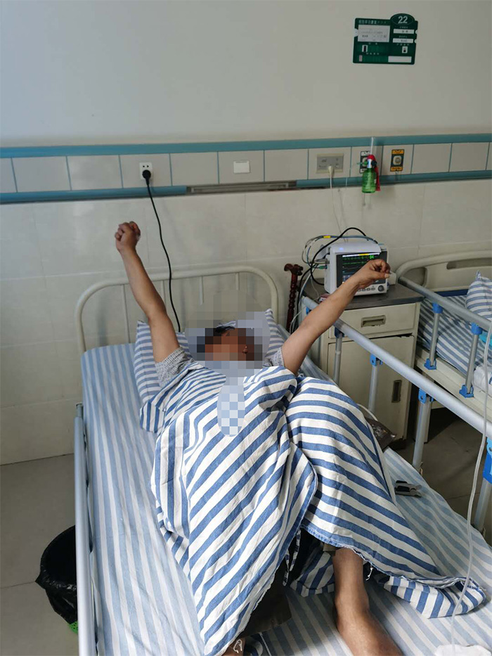 11:20溶栓开始,护士李亭为患者连接微量泵,阿替普酶快速泵入患者体内。溶栓开始后15分钟行NIHSS评分5分,董洪军医师和安永泉主任在患者床前紧盯心电监护仪,并反复询问和观察患者有无不适。