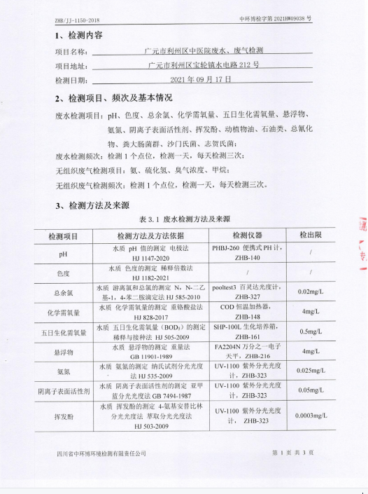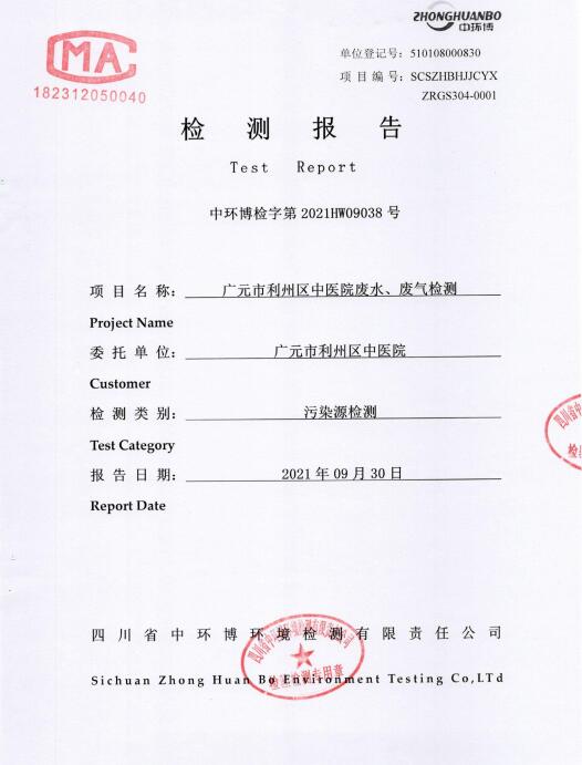 利州区中医医院2021年9月污水监测报告