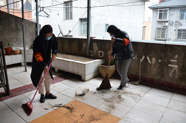 随后,共青团员为失独家庭打扫了卫生,大家拿起抹布、拾起扫把,擦窗、扫地、拖地,用我们的实际行动给予他们生活上的照顾和精神上的支持。