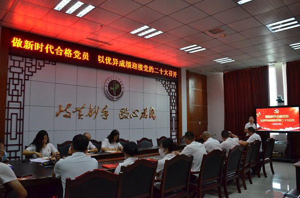 6月21日,利州区中医医院行政后勤党支部组织开展“喜迎二十大·广元党旗红”主题党日活动,通过重温入党誓词、过政治生日、支部书记上党课、现场缴纳党费等方式丰富展开主题党日活动,让全体党员干部重温入党初心、牢记党员使命、提升理论水平,以崭新面貌迎接党的二十大召开。